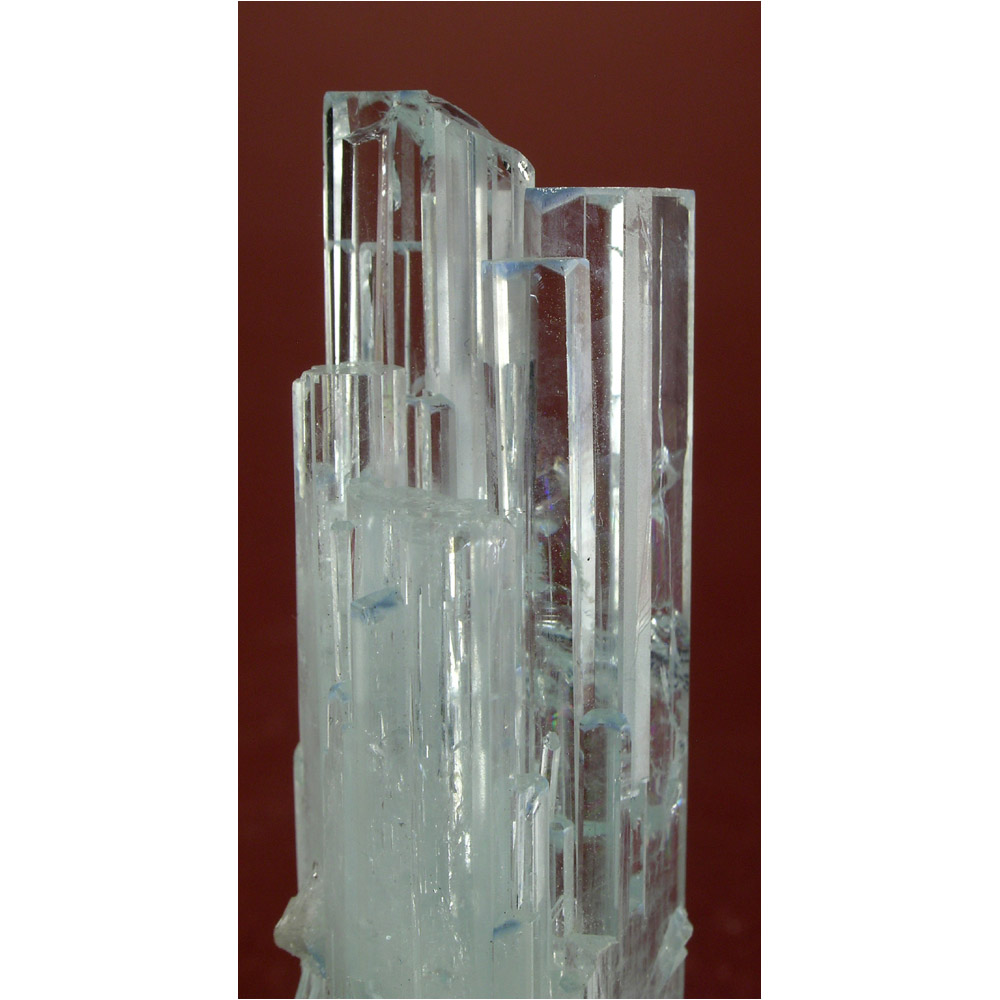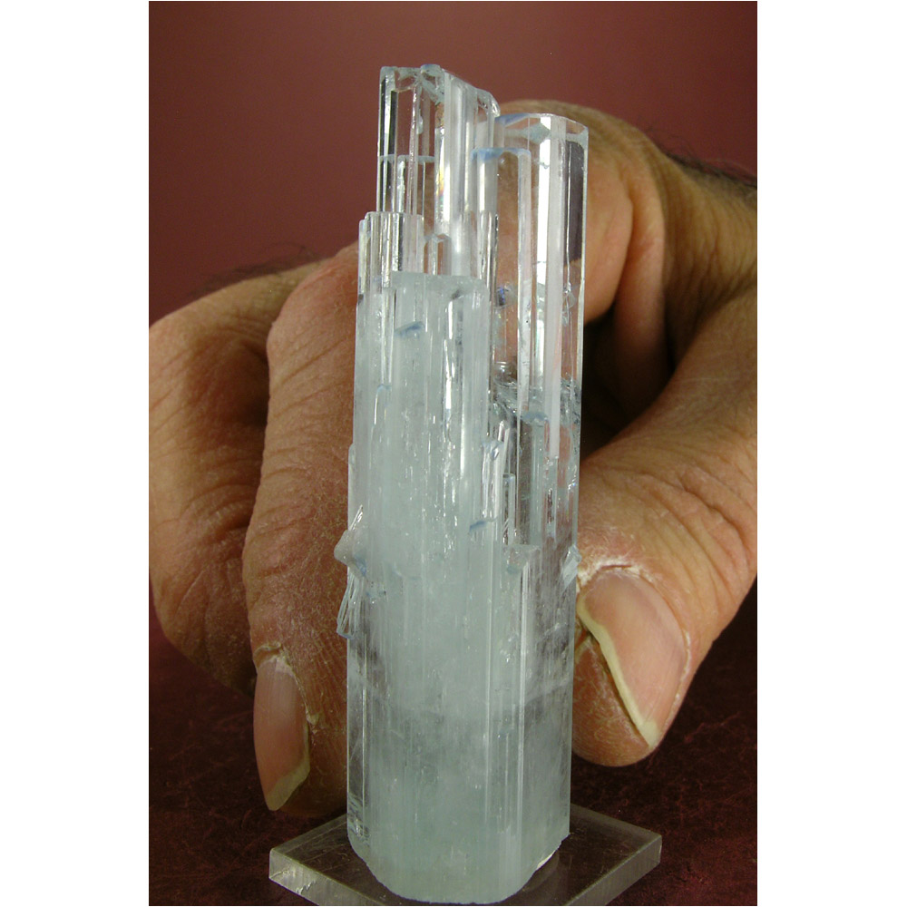 A large and superbly crystallized specimen of GEMMY, rich blue Aquamarine Beryl from the Shigar Valley in Pakistan. It features a large and lustrous Aquamarine crystal with a beautiful array of cascading terminations. The Aquamarine crystal exhibits a glassy luster and good clarity in its top half. One of the smaller terminations may be cleaved, but this does not distract form the overall beauty of the formation. All in all, quite brilliant as the photos show.