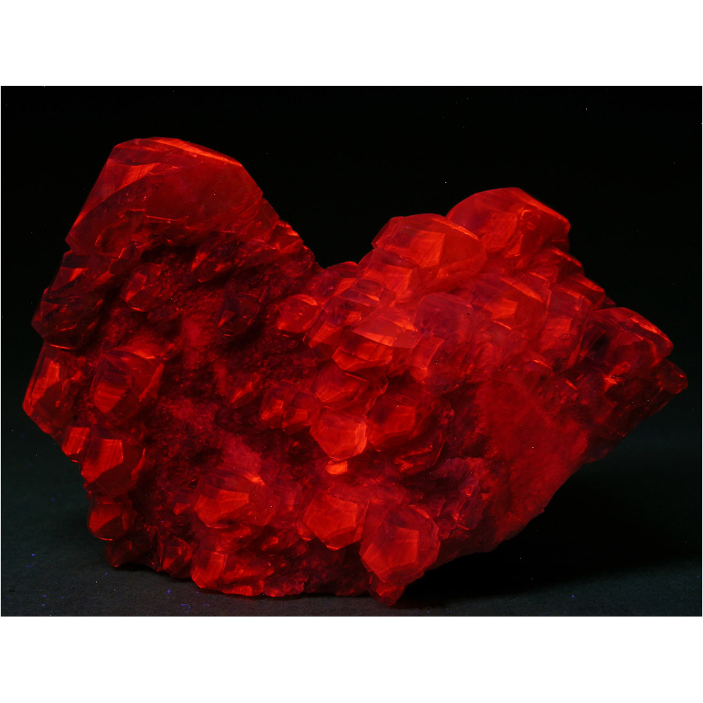 A beautifully composed and quite colorful specimen of yellow to red Calcite crystals from China. It features a gorgeous array of brightly colored Calcite crystals arranged into the graceful pagoda formation pictured. The Calcite is sharply crystallized and exhibits loads of amazing details to explore on all sides. As an added bonus, the Calcite fluoresces a bright reddish-orange color under shortwave UV light (next photo).