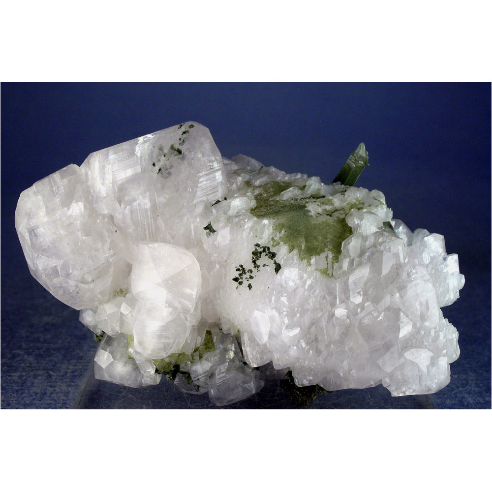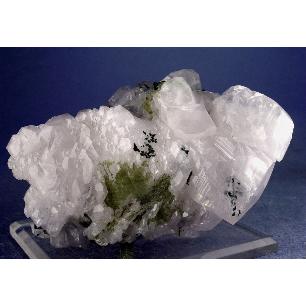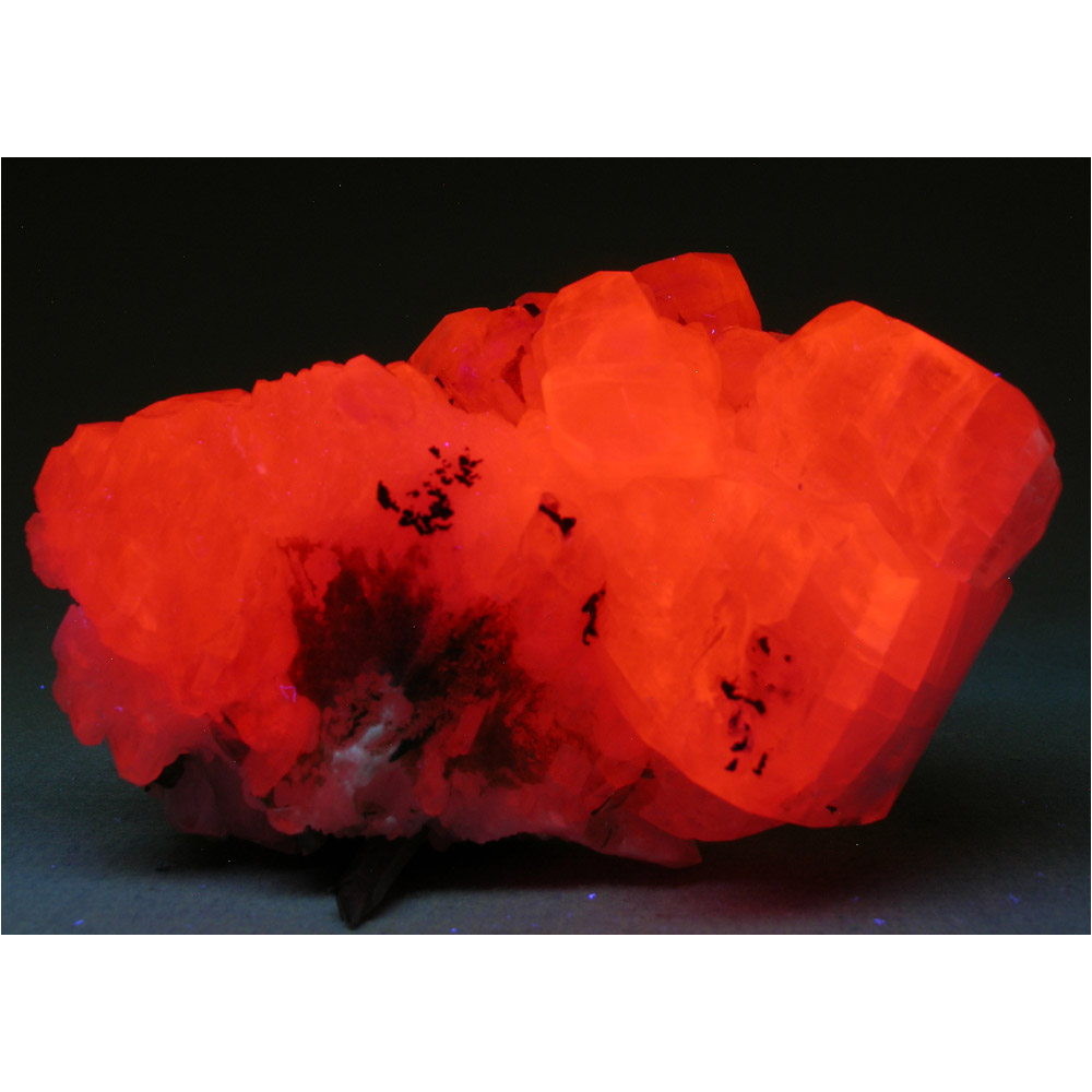 A beautiful specimen of super-lustrous Calcite crystals with Quartz from the Xianghuapu mine in Hunan, China. The Calcite FLUORESCES bright orange under shortwave UV light, and a dusting of greeen Chlorite adds a nice bit of contrast. Presents nicely for display as pictured, with lots of attractive details for you to explore all over.