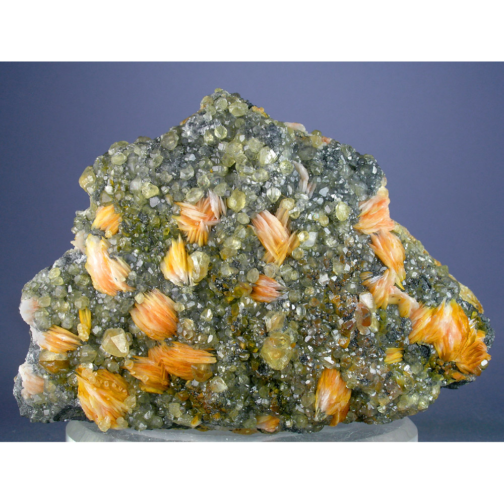 A large and very showy specimen of salmon-pink Cerussite with Barite and Galena from Morocco. Highly FLUORESCENT as shown in the next photo. A visually impressive display specimen, in excellent condition as pictured. Lots of beautiful details for you to explore on this beauty, with a graceful composition and great presentation for display.