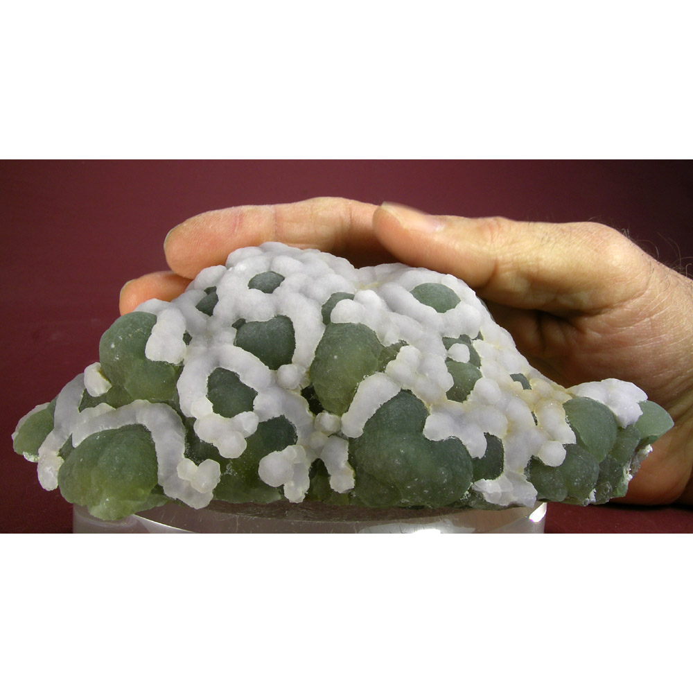 A unique and quite attractive specimen of Fluorite from a brand new find in December of 2023 in Henan, China. It features a matrix of botryoidal green Fluorite, with a second generation of lacey white Fluorite artfully positioned over it. There was only one dealer at the Tucson gem show that had these, and I bought all of the best ones. Lots of amazingdetails for you to explore all over this remarkable piece.