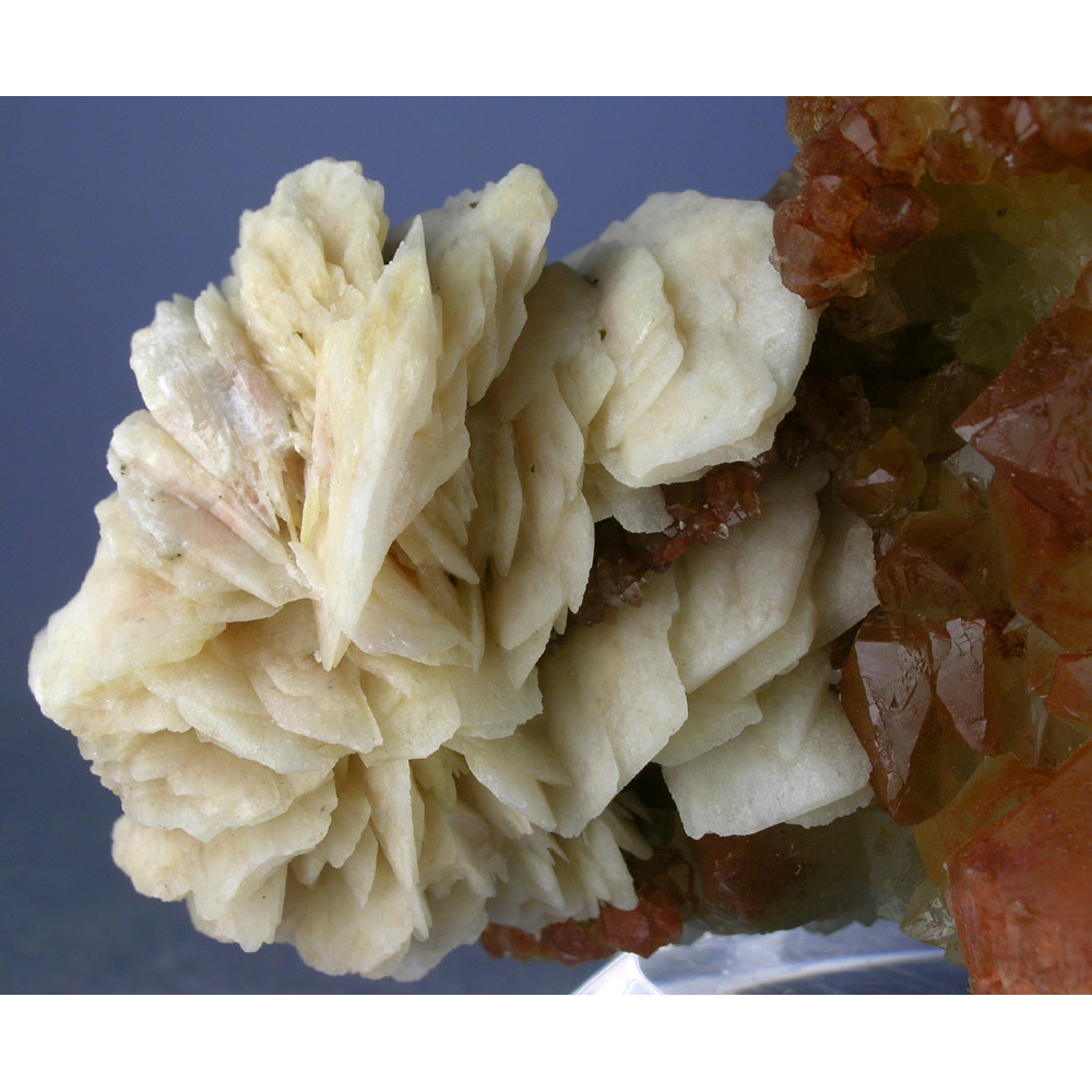 A large and quite striking SELF-STANDING specimen of red Quartz crystals with Barite from Aouli, Morocco. This mine has produced many fine specimens of Fluorite, Azurite, and Malachite. This specimen is from an old find and is rather atypical of this locality, primarily because of the presence of Barite. Very colorful and showy, with lots of interesting details for you to explore all over.