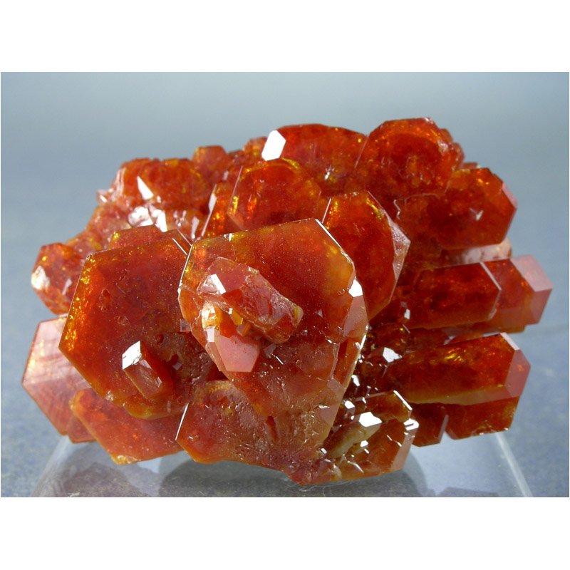 A very colorful specimen of lustrous, candy-red Vanadinite from Mibladen, Morocco. It features numerous vivid red and quite GEMMY Vanadinite crystals inter-joined to create the highly-detailed formation pictured. Excellent presentation for display as shown, with lots of fine details for you to explore all over.